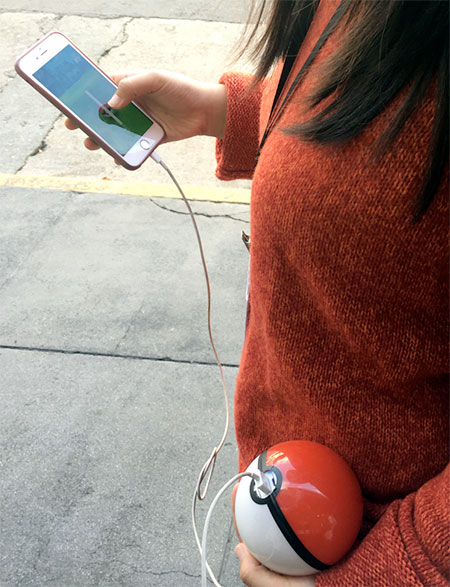 Cool phone battery charger handmade by San Francisco based Pokemon Go player Danielle Baskin looks like a Pokeball.